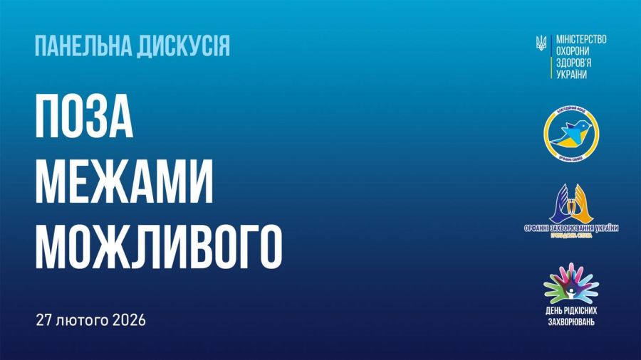 Панельна дискусія «ПОЗА МЕЖАМИ МОЖЛИВОГО», що відбудеться 27 лютого 2026 року в м. Києві із залученням представників ERN, європейських лікарів та пацієнтських спільнот, представників української влади, Національної служби здоров’я України, Державного підприємства «Медичні закупівлі...